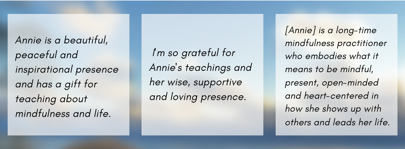 In addition to being a dharma teacher in the zen tradition of Thich Nhat Hanh, Annie has been through and continues treatment for endometrial cancer and Chronic Myloid Leukemia (CML), and lives with the genetic marker for cancer known as Lynch Syndrome. She is offering this practice series because of the many ways that this practice has given meaning and ease to her own cancer journey.
